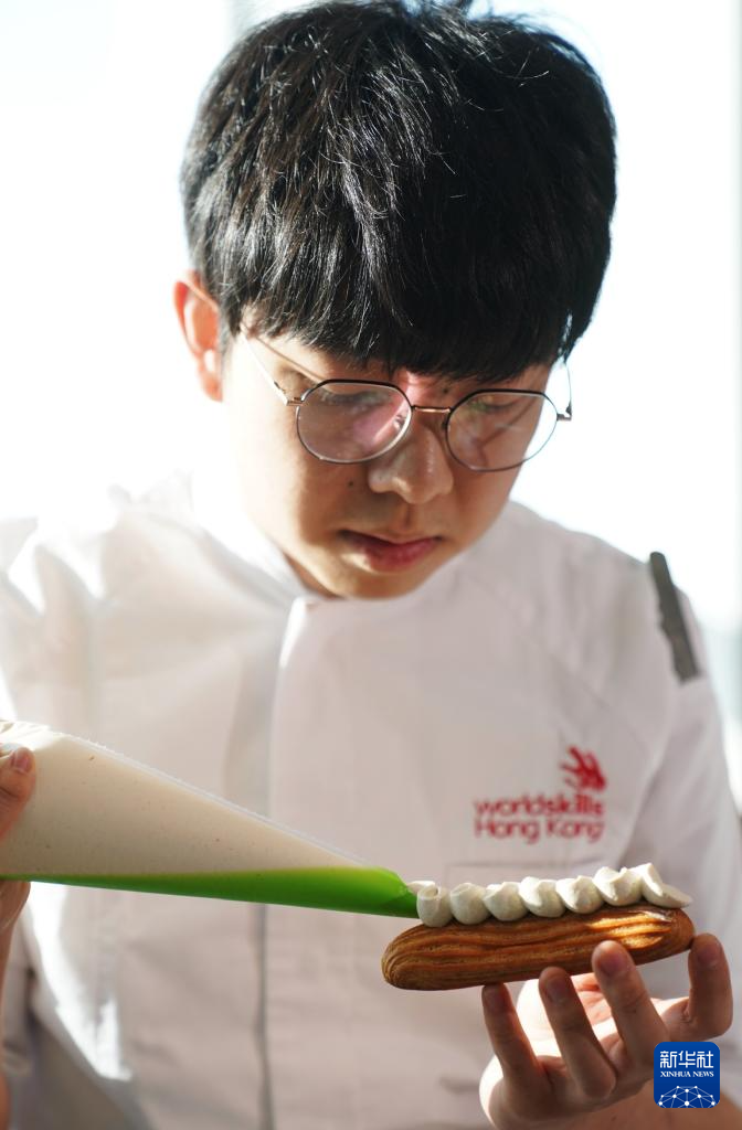 梦想的实现,源于登上世界技能大赛的舞台。姚浩民的导师霍耀文是香港国际厨艺学院国际厨务部总教导员,也是“2024年里昂世界技能大赛”“西点制作”项目专家。他说,代表中国香港队出赛要先过关斩将进行选拔,因为比赛分两天历时16小时,不但要具备专业技能及知识,还要承受比赛压力。