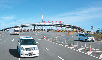 图为车辆经港珠澳大桥抵达珠海。(中新社记者 陈骥旻 摄)