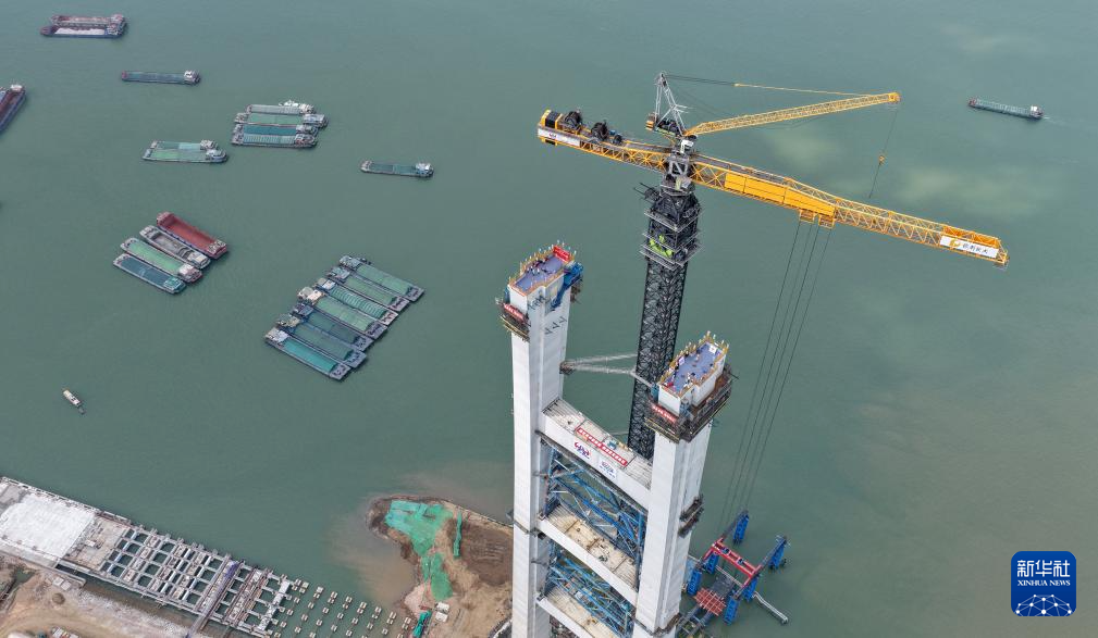 3月26日,粤港澳大湾区超级工程狮子洋大桥实现东、西主塔封顶,塔高342米,相当于110层楼的高度。