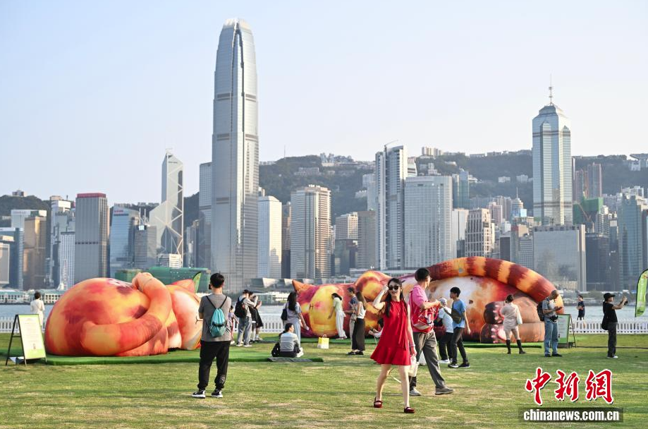三月的香港,最适合以“漫游”的方式打开。从街头到展馆,艺术无处不在。漫步西九文化区,大型互动艺术装置“梦游喵境”卧于海旁,憨态可掬,引得民众驻足打卡。走入展馆,则是另一番天地。香港艺术月的焦点盛事——巴塞尔艺术展(ArtBasel)香港展会与“艺术中环”(ArtCentral)同期登场,汇聚全球顶尖画廊与先锋艺术家带来新锐作品,吸引藏家与艺术爱好者纷至沓来。与此同时,苏富比带来罗斯科的《红色中的棕色和黑色》,估价高达7.8亿港元;佳士得则呈献李希特的《抽象画》,最终以9210万港元成交。这些传世之作,普通人亦可近距离一睹大师笔触。傍晚行至中环,香港会所大厦外墙上,光影作品《DeePleThePeople》以动态影像对话城市建筑,展现香港作为国际大都市的活力。从街头到展馆,艺术三月以多元形态融入城市空间。艺术不再是殿堂内的珍藏,更成为民众日常的一部分,让香港在春日里焕发艺术光彩。图为民众在西九文化区艺术公园草坪上欣赏维港景色与大型艺术装置“梦游喵境”。中新网记者 李志华 摄