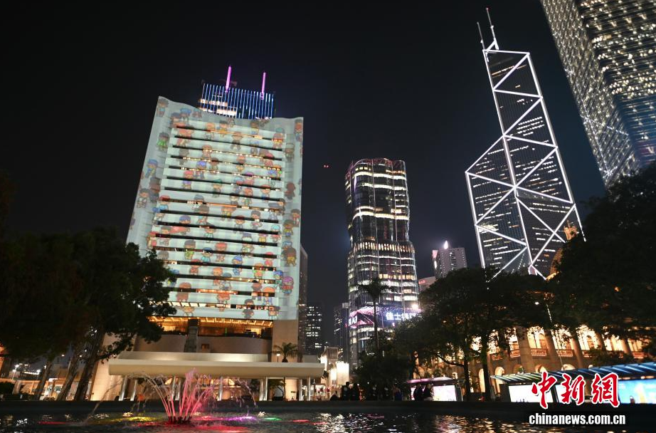图为光影作品《DeePleThePeople》投影在香港会所大厦外墙上。中新网记者 李志华 摄