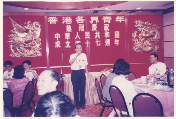 1996年,王志民在香港各界青年国庆活动上致辞。(图片来源:作者提供)