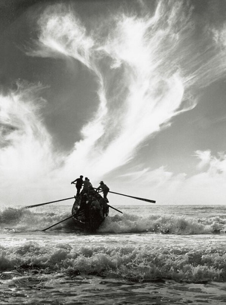 他又说:“还有一幅作品也印象深刻,是去年《人民画报》发表的封面照片《搏斗》。据说这幅作品是两底合成的,大海和渔船是一底,天空的白云又是一底。它通过渔民与巨浪搏斗的情景,表现了不惧困难、不怕挫折,齐心协力、奋勇拼搏的精神。”学思果然有所研究。