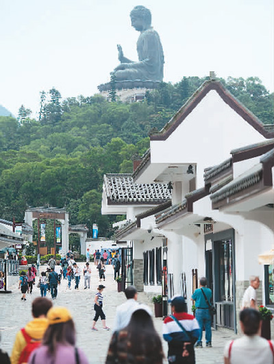 游客在香港昂坪市集游览。(新华社 张金加 摄)