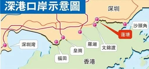 陆路口岸方面,近期最受外界关注的无疑是于2015年11月10日开工建设的莲塘/香园围口岸。作为港深间的第7个陆路口岸,莲塘/香园围口岸是货检和旅检综合性陆路口岸,它将承担香港与深圳东部、惠州以及粤东、赣南、闽南之间的跨界货运兼顾客运,是实现深港跨界交通“西进西出、东进东出”总体格局的东部重要口岸。