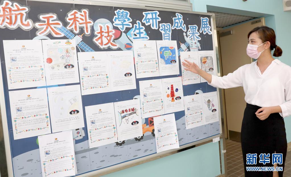 6月24日,香港培侨书院教师谢婷在介绍学生们的航天科技研习成果。(新华社记者 吴晓初 摄)