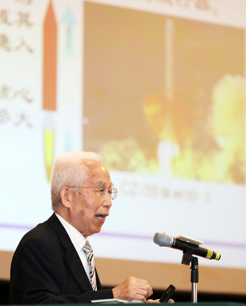 6月24日,中国工程院院士、长征系列火箭总设计师龙乐豪在香港大学作报告。(新华社记者 李钢 摄)