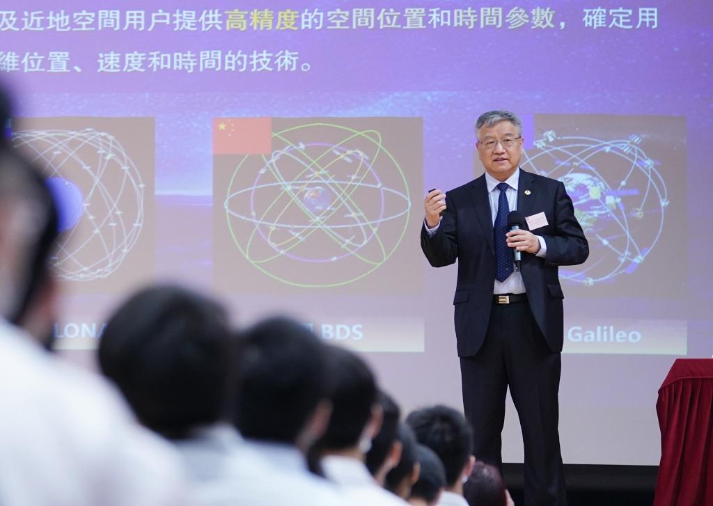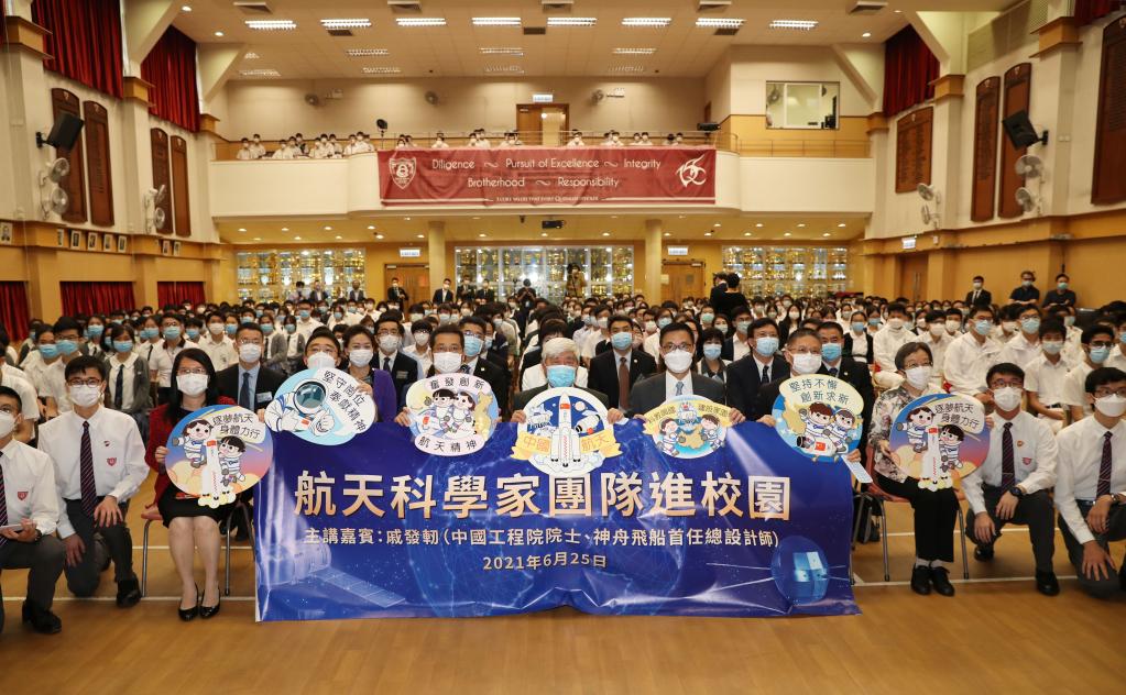 6月25日,在香港保良局甲子何玉清中学,北斗三号卫星首席总设计师谢军为学生讲演。(新华社记者 王申 摄)