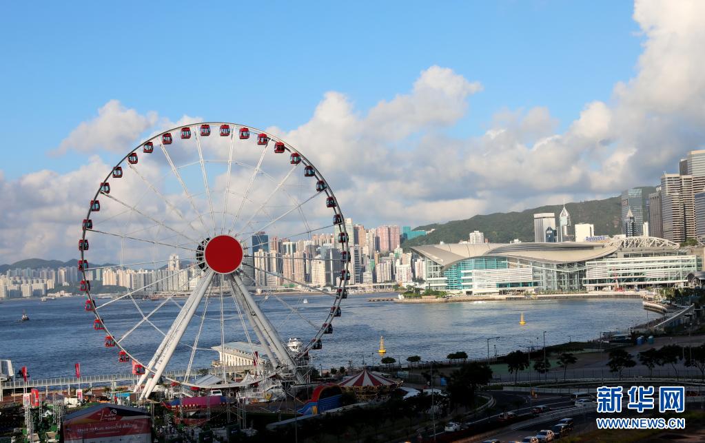 7月8日拍摄的香港的摩天轮和会展中心。(新华社记者 吴晓初 摄)