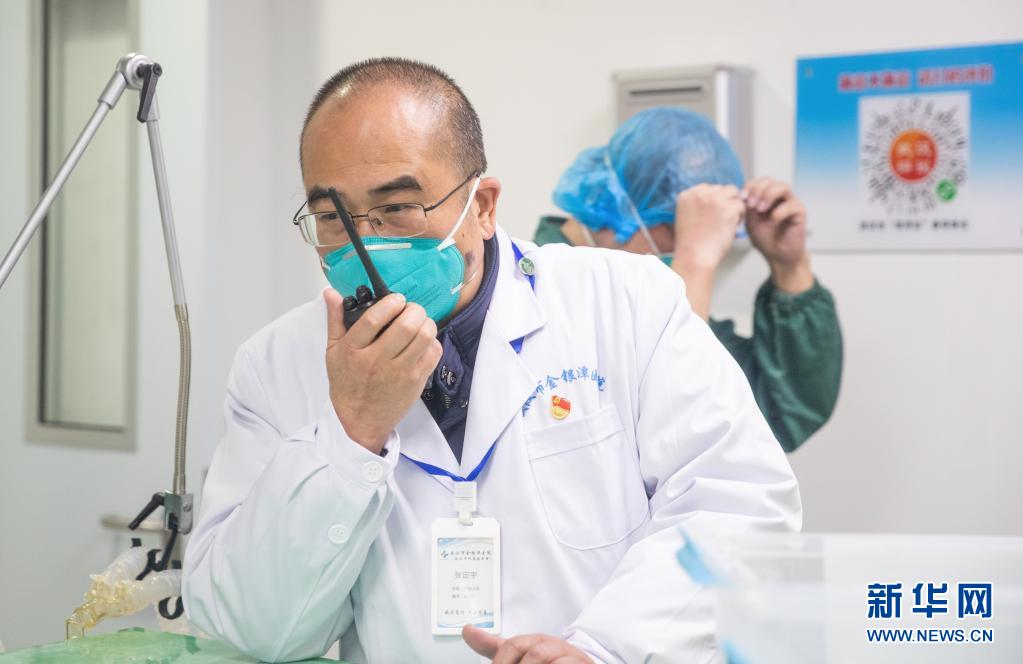 张定宇在武汉金银潭医院综合病区楼联系、协调工作(2020年1月27日摄)。(新华社发 柯皓 摄)