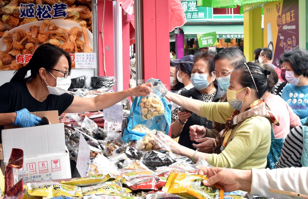 12月22日,香港举行工展会,吸引不少市民在场地内选购食品。(新华社记者 卢炳辉 摄)
