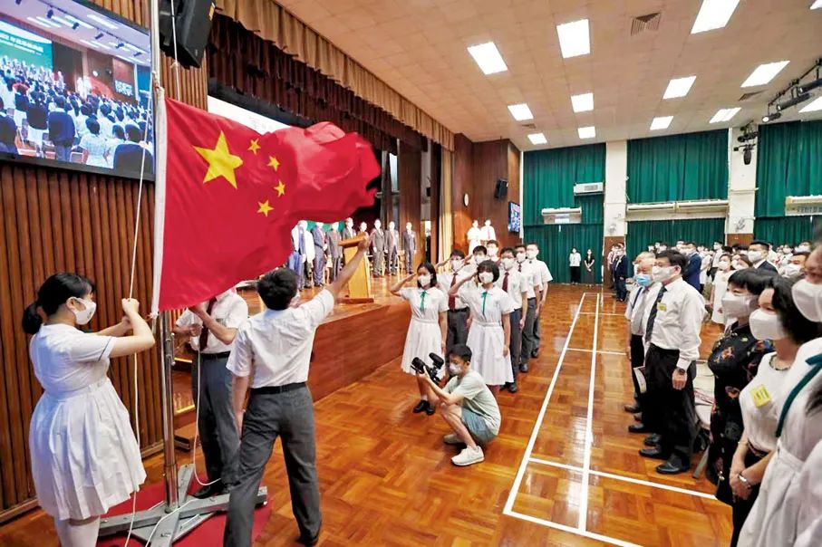 2022年5月,毕业典礼上,香港培侨中学举行升国旗仪式。