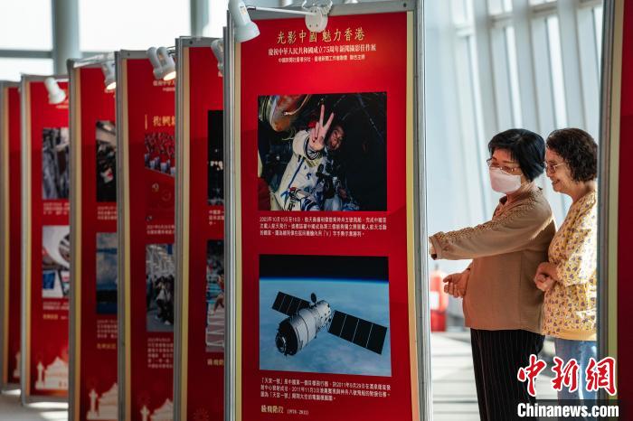 10月24日下午,由香港新闻工作者联会和中国新闻社香港分社共同主办、新鸿基地产协办的“光影中国 魅力香港”庆祝中华人民共和国成立75周年新闻摄影佳作展在香港“天际100”观景台开幕。