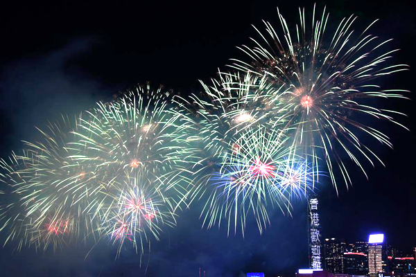 特写:璀璨烟花耀香江庆新中国76周年华诞