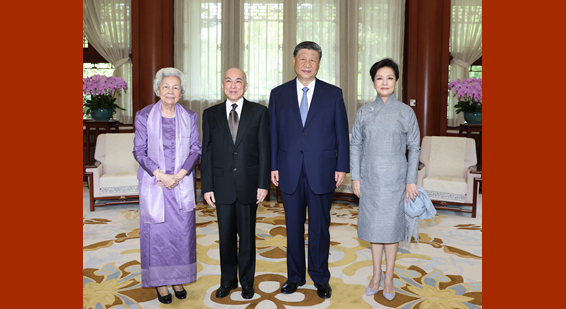 习近平夫妇会见柬埔寨国王西哈莫尼和太后莫尼列