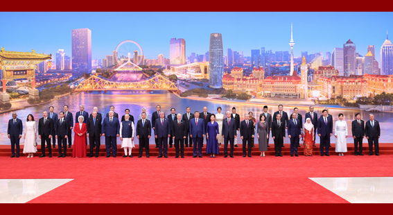 习近平和彭丽媛为出席2025年上海合作组织峰会的国际贵宾举行欢迎宴会