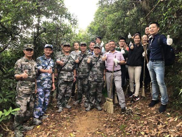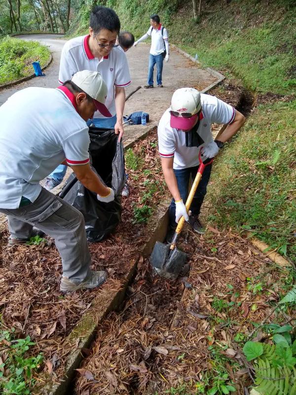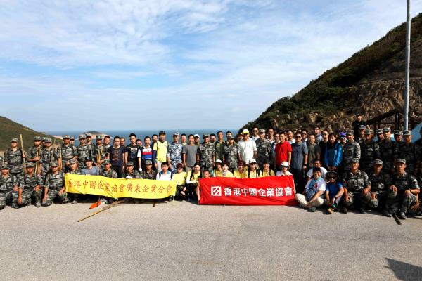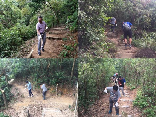 中资企业员工清理麦理浩径9段沟渠。(图片来源:中央政府驻港联络办)