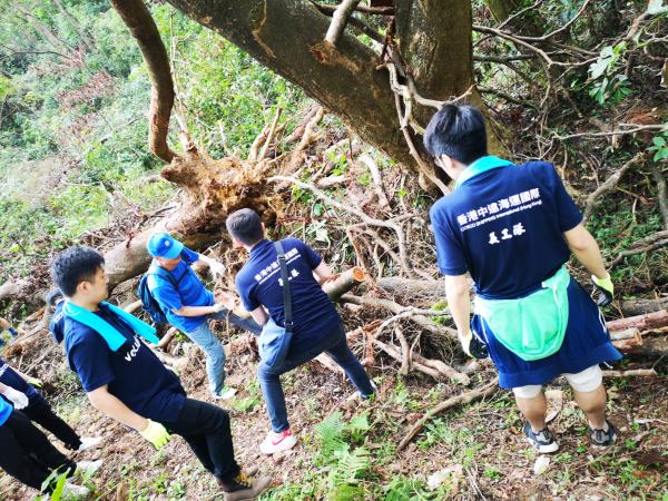 中资企业员工清理麦理浩径9段上的断树残枝。(图片来源:中央政府驻港联络办)