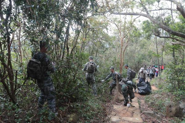 中央驻港机构和中资企业义工队到麦理浩径清理山路