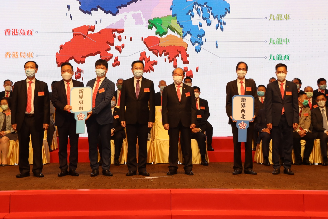 本网讯 6月25日,香港广东社团总会举行“贺建党百年 庆香港回归”系列活动启动礼暨广总全港10区分会成立仪式。我办副主任何靖出席,并与香港特区行政长官林郑月娥、驻港国安公署署长郑雁雄、外交部驻港特派员公署特派员刘光源等共同主礼。