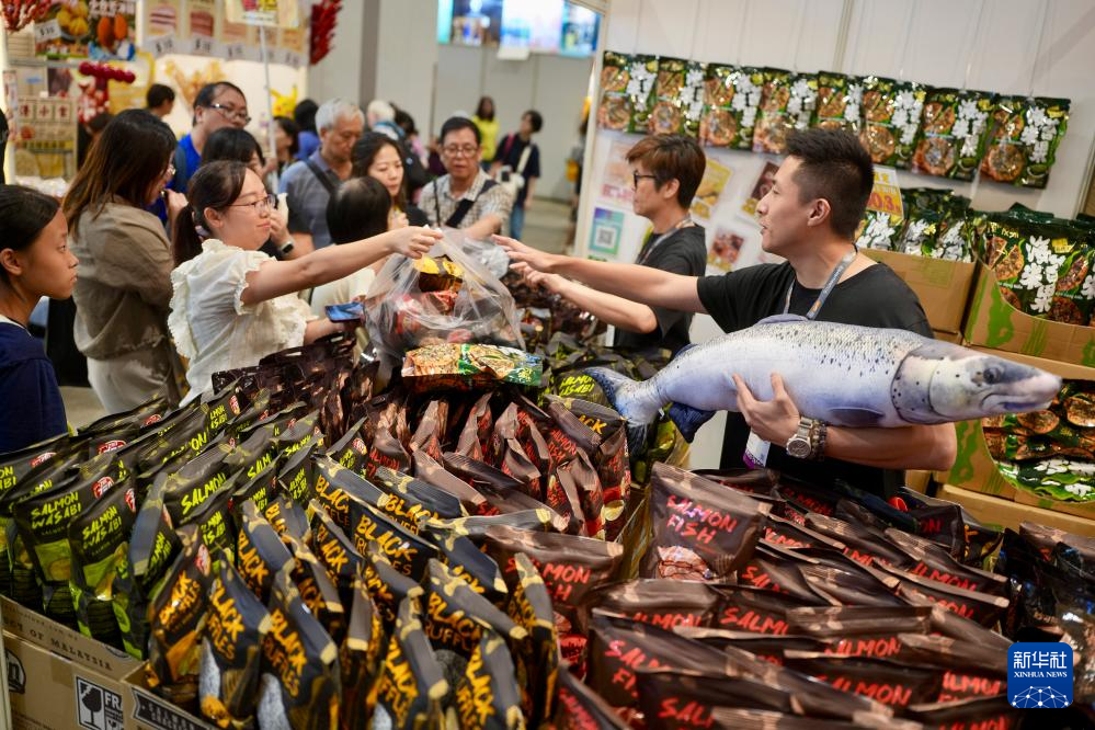 8月14日,观众在第35届美食博览上选购商品。新华社发(吕小炜 摄)