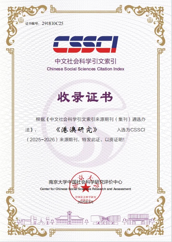 根据《中文社会科学引文索引来源期刊(集刊)遴选办法》,《港澳研究》成功入选为CSSCI(2025-2026)来源期刊。