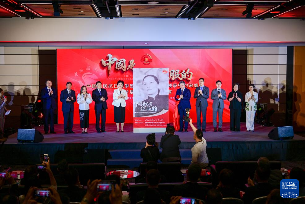 由中国福利会主办的“中国是不可征服的——中国人民抗日战争暨世界反法西斯战争中的宋庆龄图片展”8月20日在香港会展中心举行开幕式暨招待会。