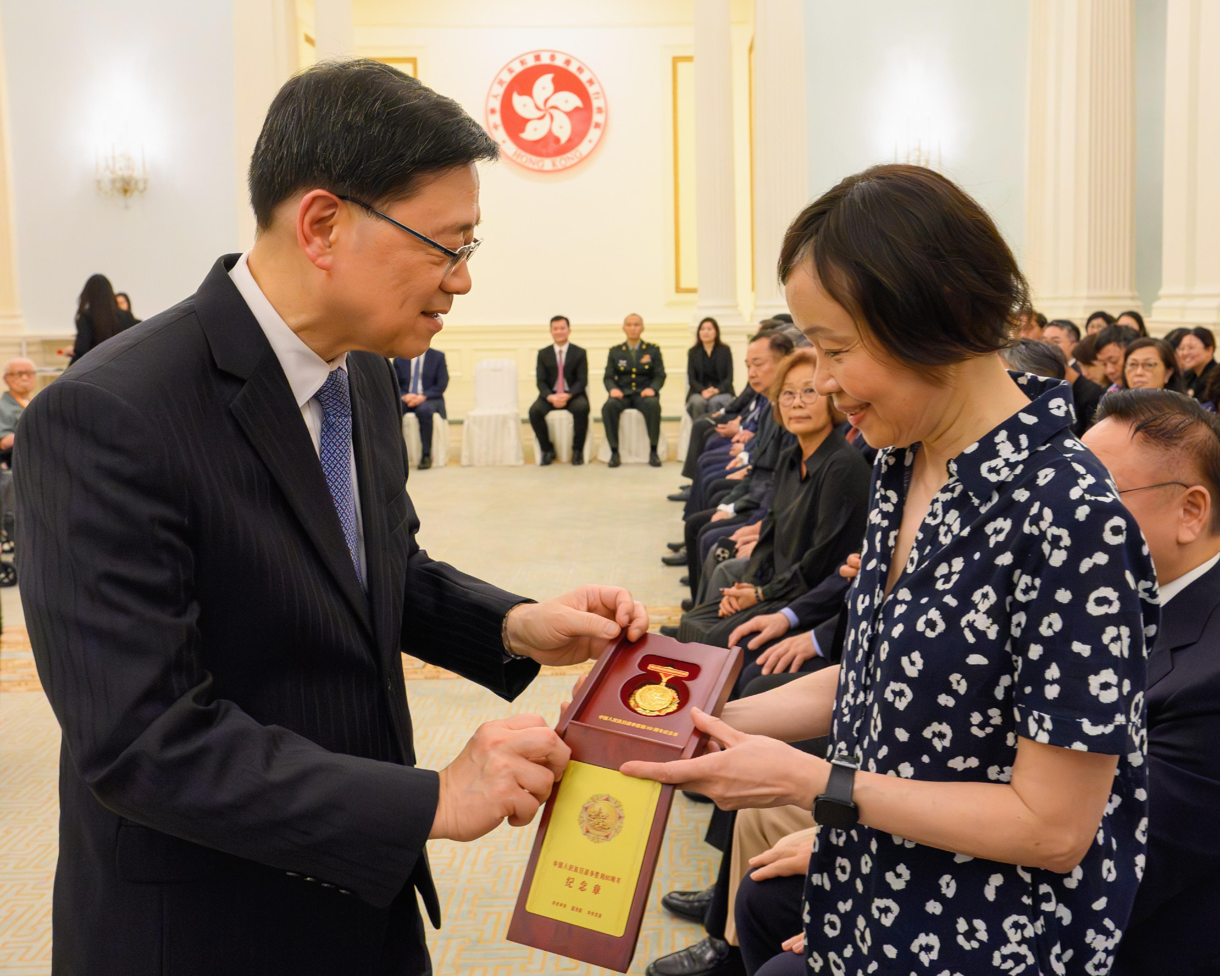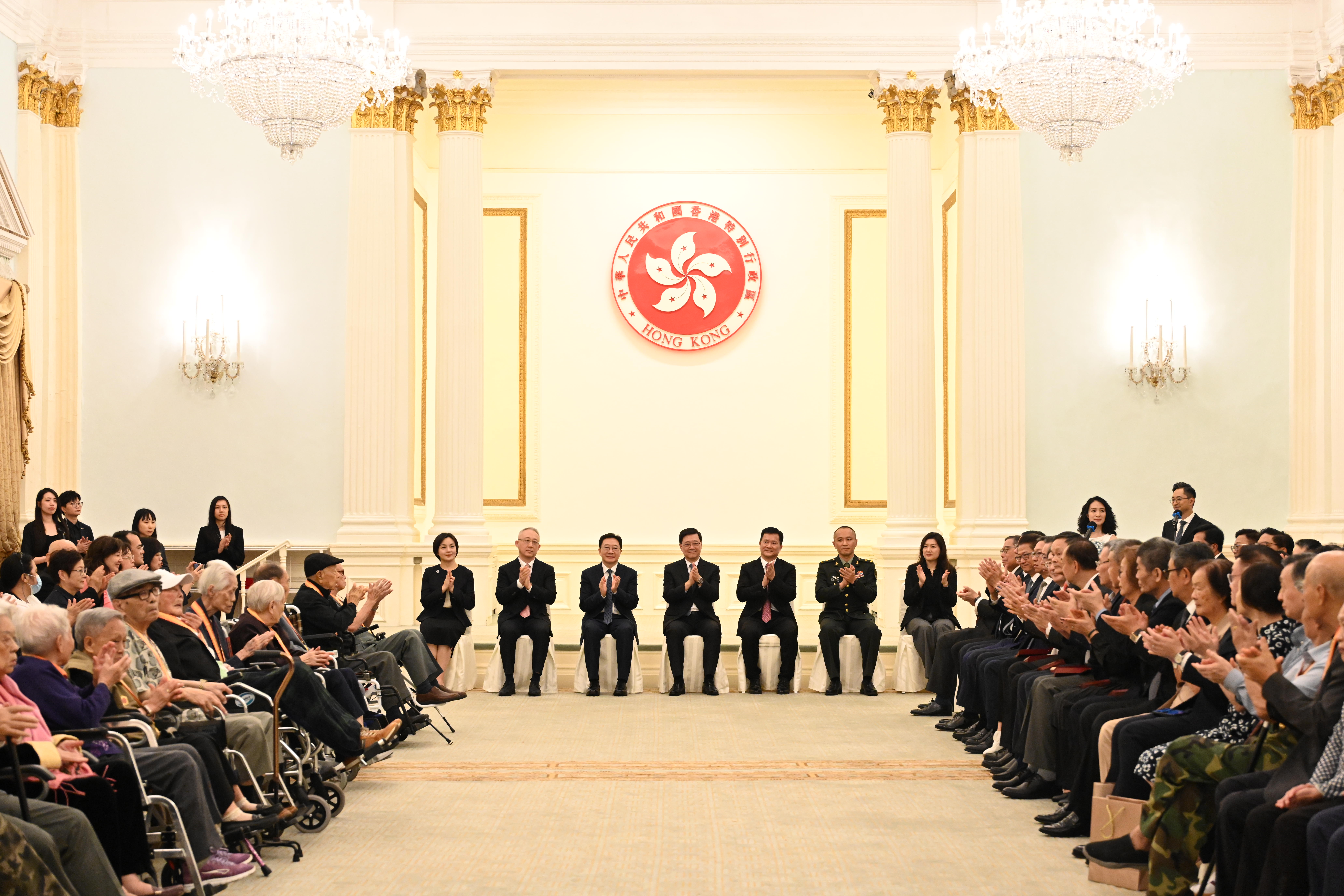 香港特别行政区政府8月22日于香港礼宾府举行“中国人民抗日战争胜利80周年纪念章颁授仪式”。