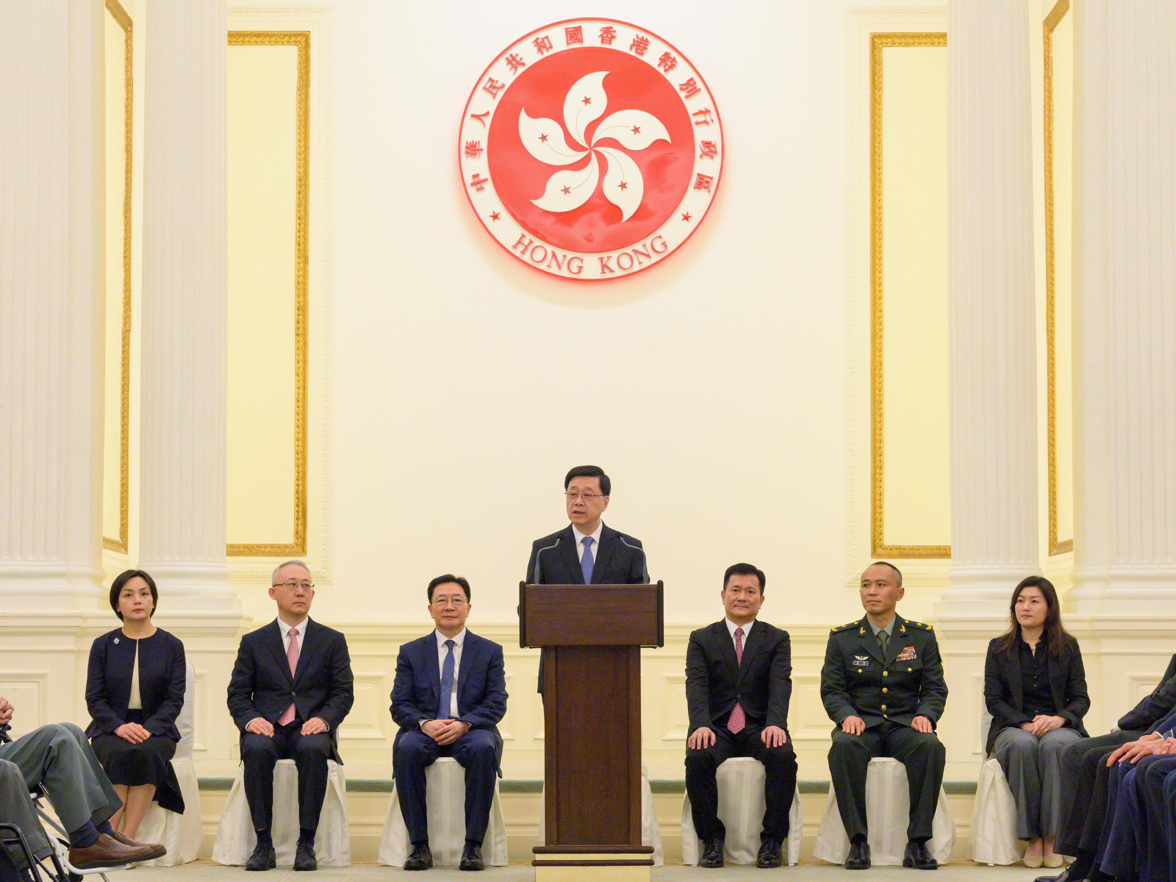 行政长官李家超8月22日在香港礼宾府举行的“中国人民抗日战争胜利80周年纪念章颁发仪式”上致辞。