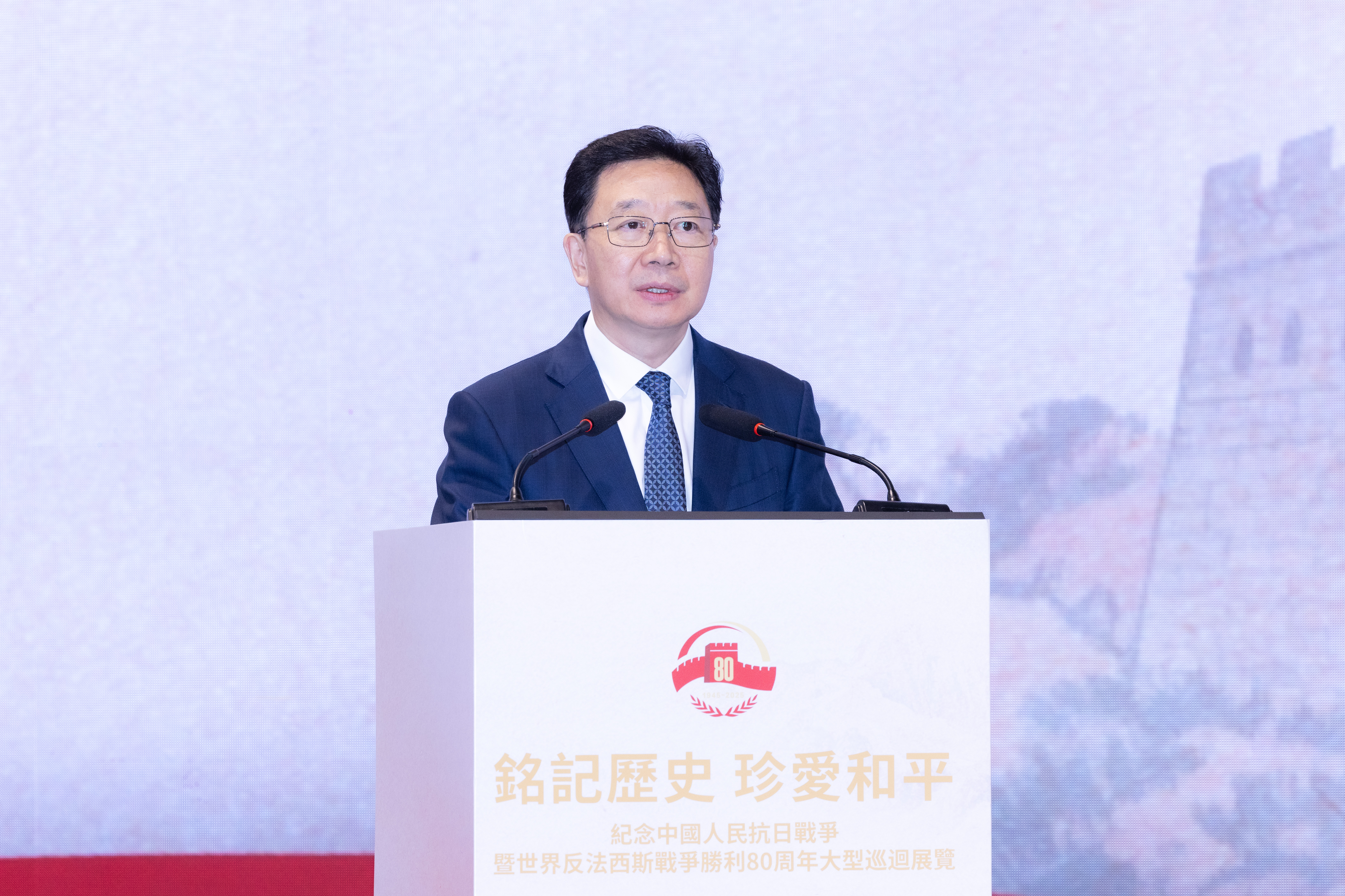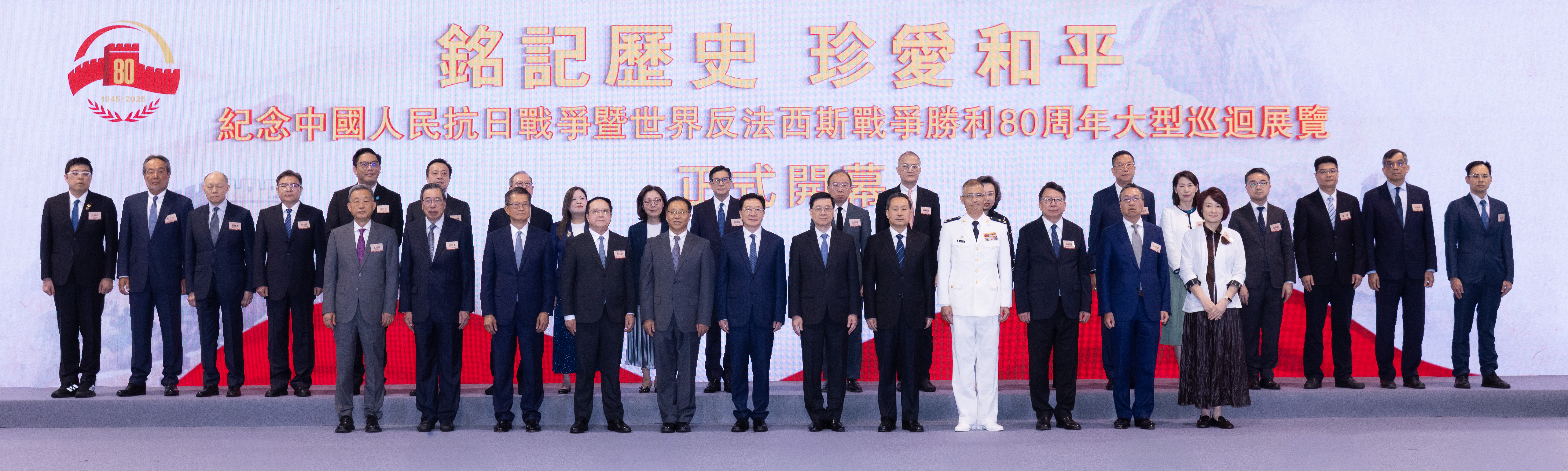 8月22日,“铭记历史 珍爱和平——纪念中国人民抗日战争暨世界反法西斯战争胜利80周年大型巡回展览”开幕仪式在香港举行。香港特别行政区行政长官李家超、中央政府驻港联络办主任周霁出席并致辞。