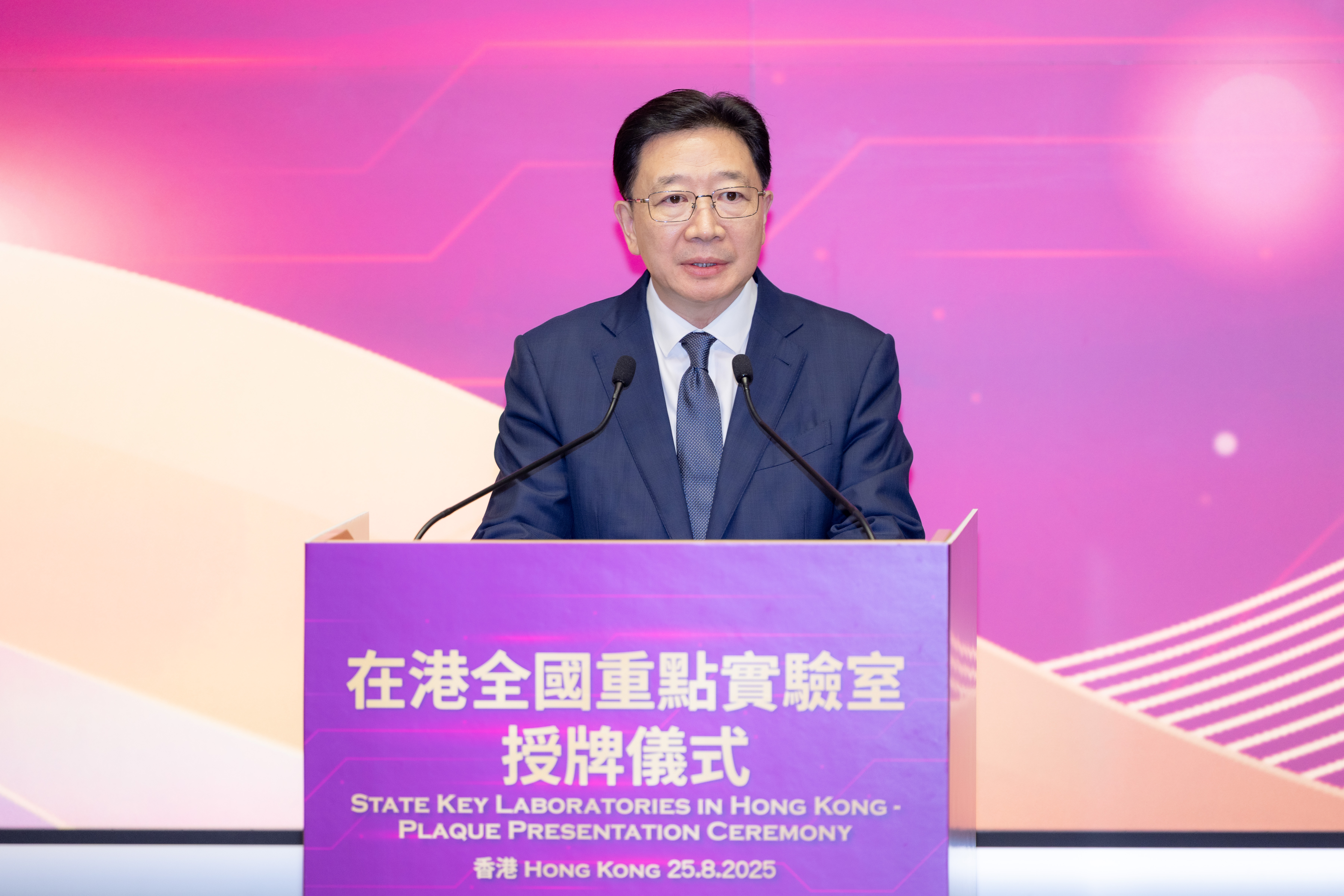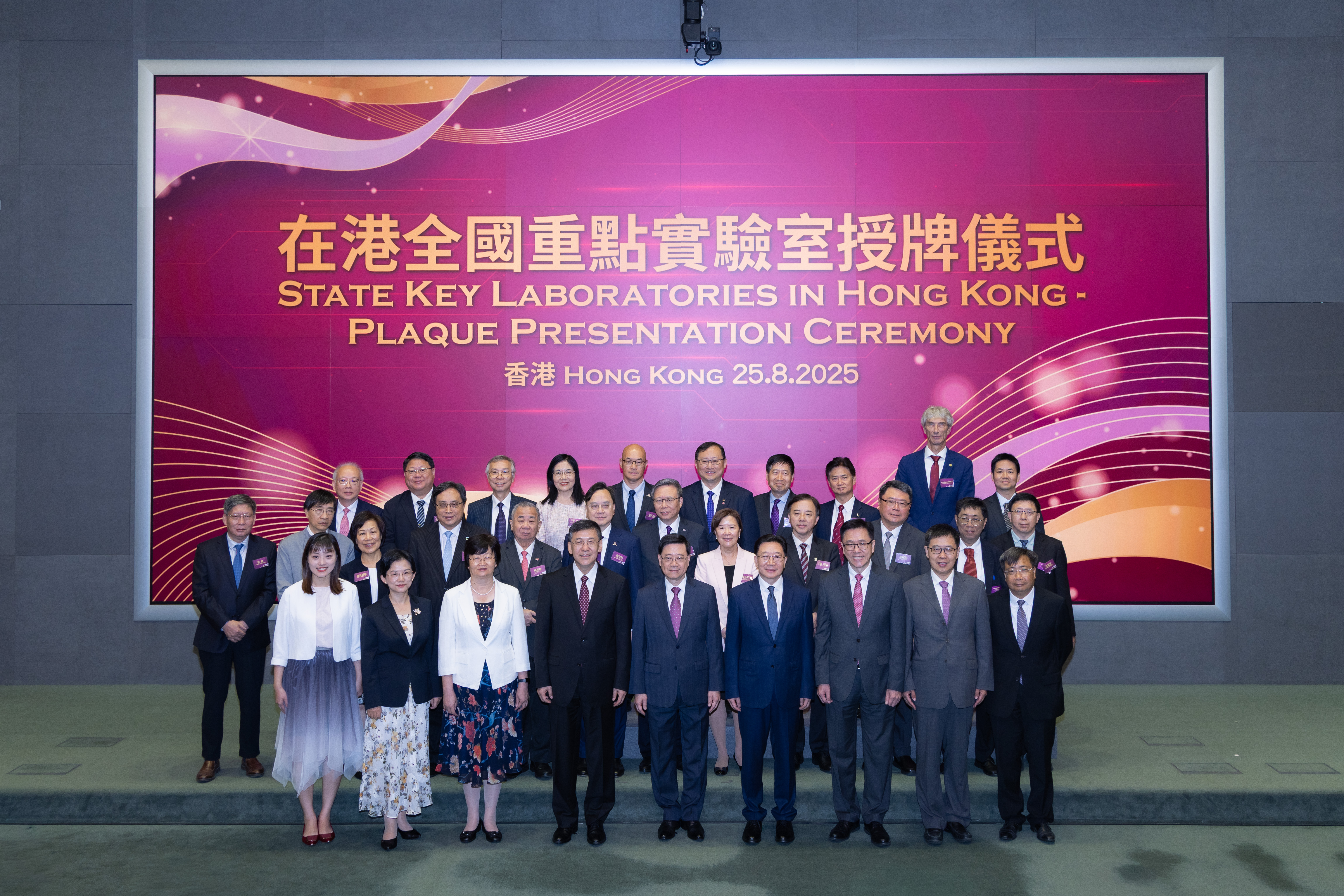 本网讯 8月25日,香港特区政府举办在港全国重点实验室授牌仪式。行政长官李家超、科技部部长阴和俊、中央政府驻港联络办主任周霁出席并致辞。