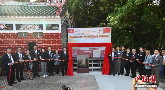 香港西贡北官坑村七圣古庙抗战纪念碑8月31日揭幕。香港特区政府政务司司长陈国基在揭幕典礼致辞时表示,伟大的抗战精神将成为激励一代代人奋勇向前的重要动力。