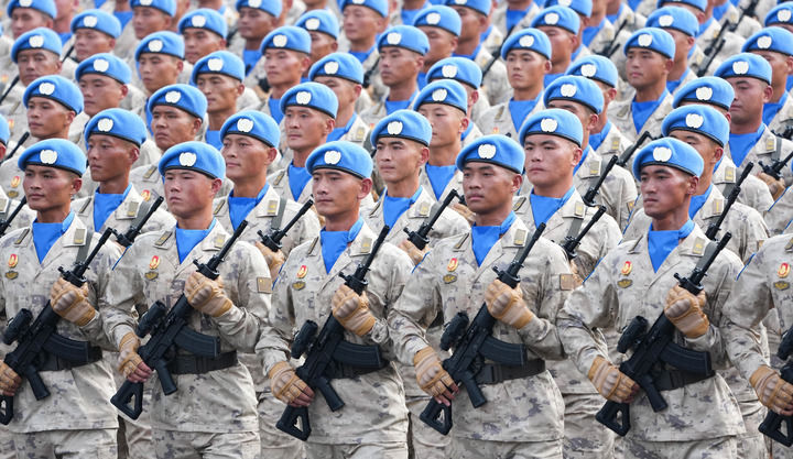 2025年9月3日,纪念中国人民抗日战争暨世界反法西斯战争胜利80周年大会在北京隆重举行。这是维和部队方队接受检阅。新华社记者 王建华 摄