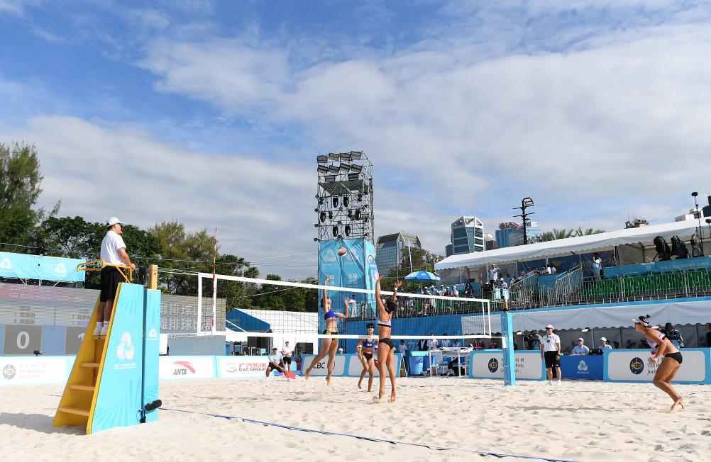 第十五届全国运动会香港赛区赛事10月31日正式拉开帷幕,首个竞赛项目沙滩排球在维多利亚公园展开角逐。