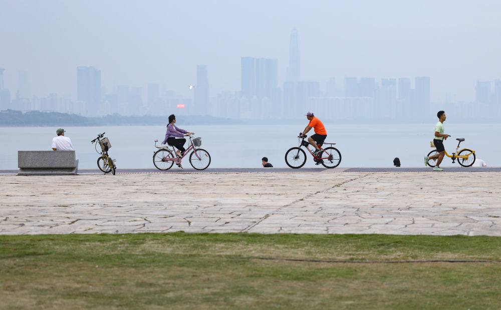 ↑2025年10月24日,市民在深圳前海骑行。新华社记者 梁旭 摄