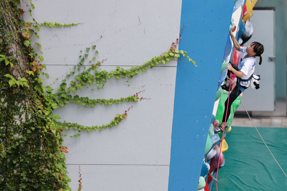 ↑这是2025年6月21日拍摄的在深圳福田区呢度有家攀岩馆,何芊芊正在进行难度攀岩训练。新华社记者 梁旭 摄