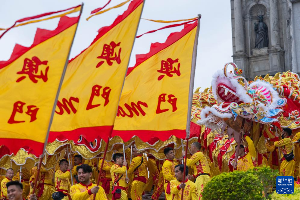 广东中山游客王世杰一早便在大三巴牌坊前等着金龙。“粤澳文化相近相通,都讲粤语、吃粤菜,都喜欢舞龙舞狮。”他说,舞龙醒狮同台献瑞的传统,把节日喜庆氛围“推向更高”。