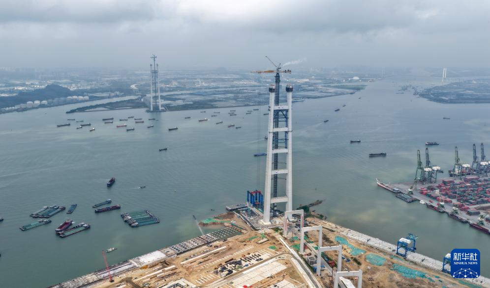 3月26日,粤港澳大湾区超级工程狮子洋大桥实现东、西主塔封顶,塔高342米,相当于110层楼的高度。