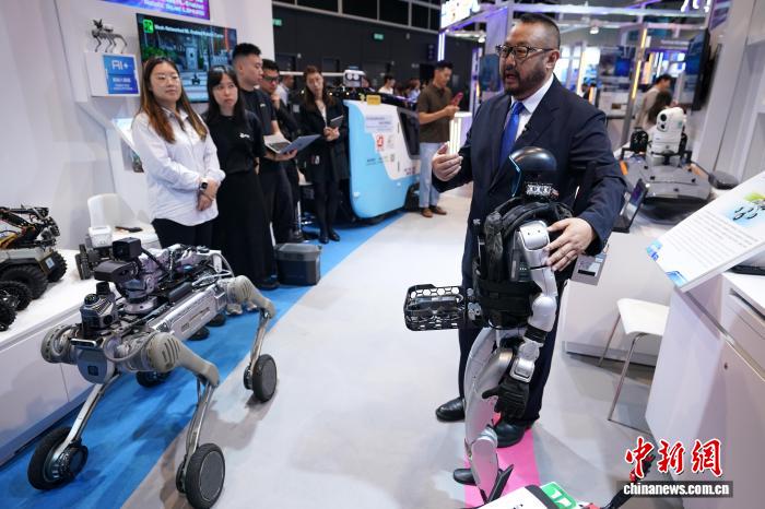 图为香港特区政府环境保护署的工作人员(右)介绍已开发应用的环境监测机器人。中新网记者 张祥毅 摄