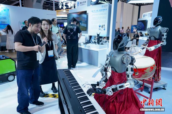图为北京一家企业研发的机器人在现场演奏乐器。中新网记者 张祥毅 摄