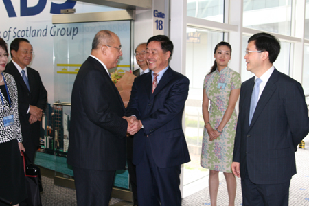 本网讯 应中共中央和中共中央总书记胡锦涛的邀请,以中国国民党主席吴伯雄为团长的中国国民党大陆访问团于5月26日经香港转机赴大陆参访。中央政府驻港联络办台湾事务部部长邢魁山、香港特别行政区政府政制及内地事务局局长林瑞麟、行政长官副官许镇德、中共中央台湾工作办公室副局长何建华、政制及内地事务局常任秘书长罗智光等到机场迎送。 5月31日,吴伯雄一行将经香港转机返台湾。