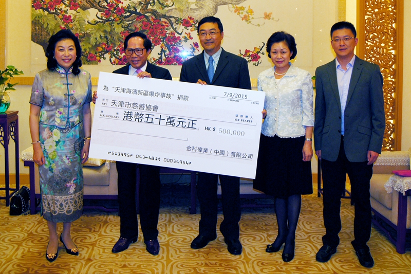 李嘉音伉俪向天津港爆炸事故牺牲者家属捐款50万港元。(图片来源:中央政府驻港联络办)