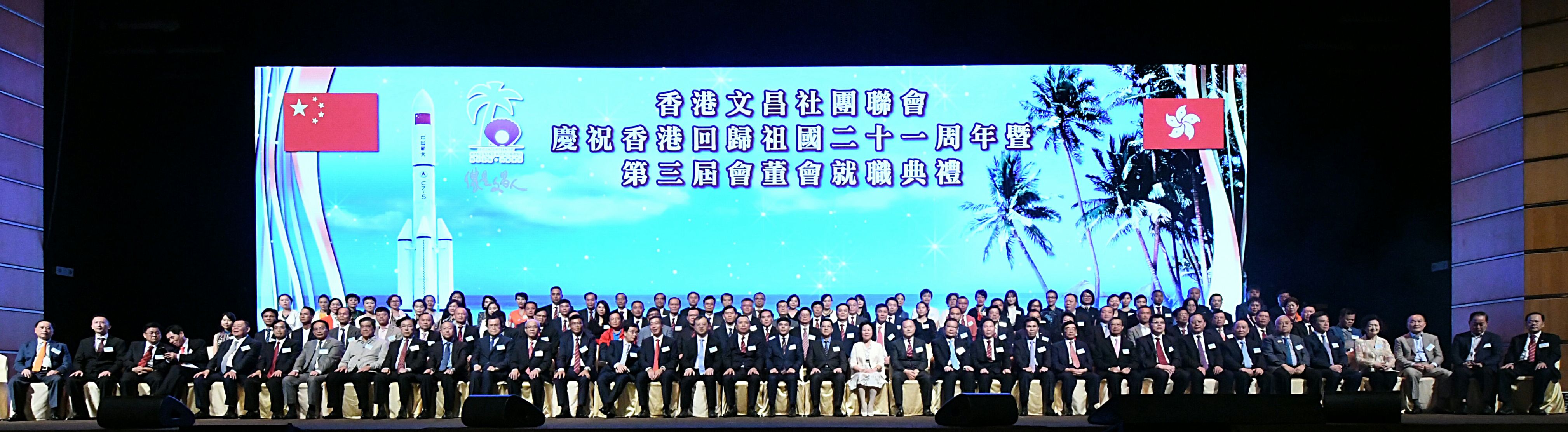 本网讯 7月2日晚,我办秘书长文宏武出席香港文昌社团联会庆祝香港回归祖国21周年暨第三届会董会就职典礼,并与全国人大常委谭耀宗,外交部驻港特派员公署副特派员赵建凯,海南省委统战部常务副部长王琼珠,海南省外事侨务办公室主任王胜,文昌市委书记钟鸣明,全国政协委员张学修、黄华康,海南社团总会会长张泰超、常务副会长兼秘书长莫海涛等共同主礼。香港文昌社团联会会长云海清、主席符传军和海南省有关部门领导、海内外琼籍各友好社团代表、文昌在港乡亲近2000人参加活动。