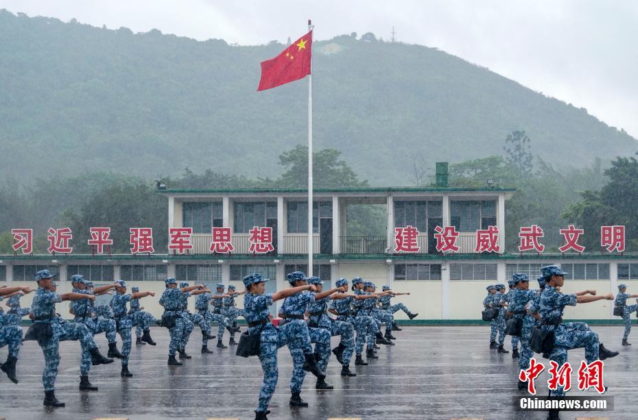 “香港大学生军事生活体验营”结业 冒雨表演岳家拳