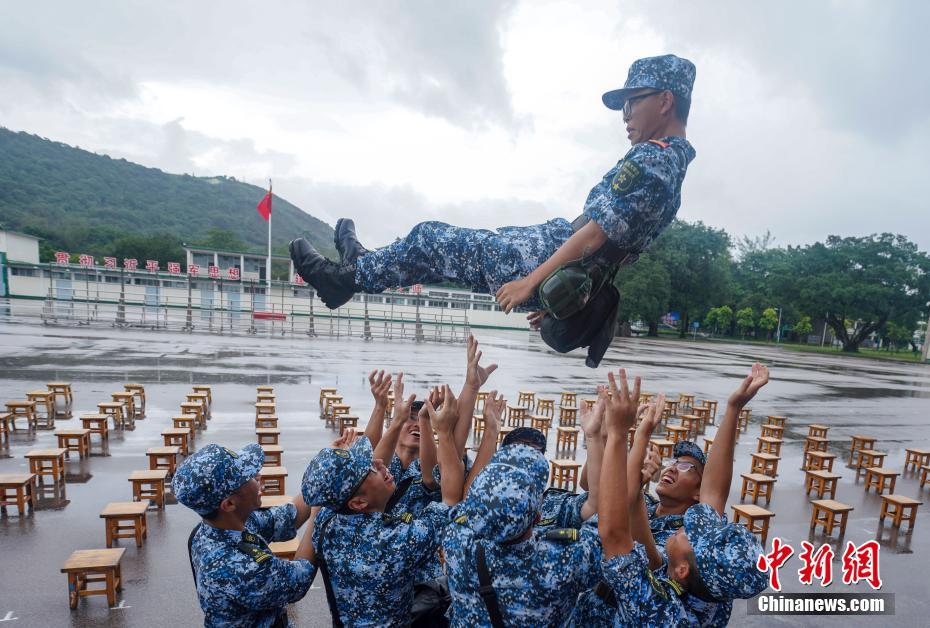 香港大学生学员庆祝顺利结业。中新社记者 张炜 摄
