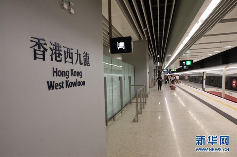 8月16日拍摄的广深港高铁西九龙站站台。当日,港铁公司表示,广深港高铁香港段试营运工作顺利完成,高铁西九龙站将于9月1日和2日首次举行开放日,供市民参观。新华社记者 吕小炜 摄