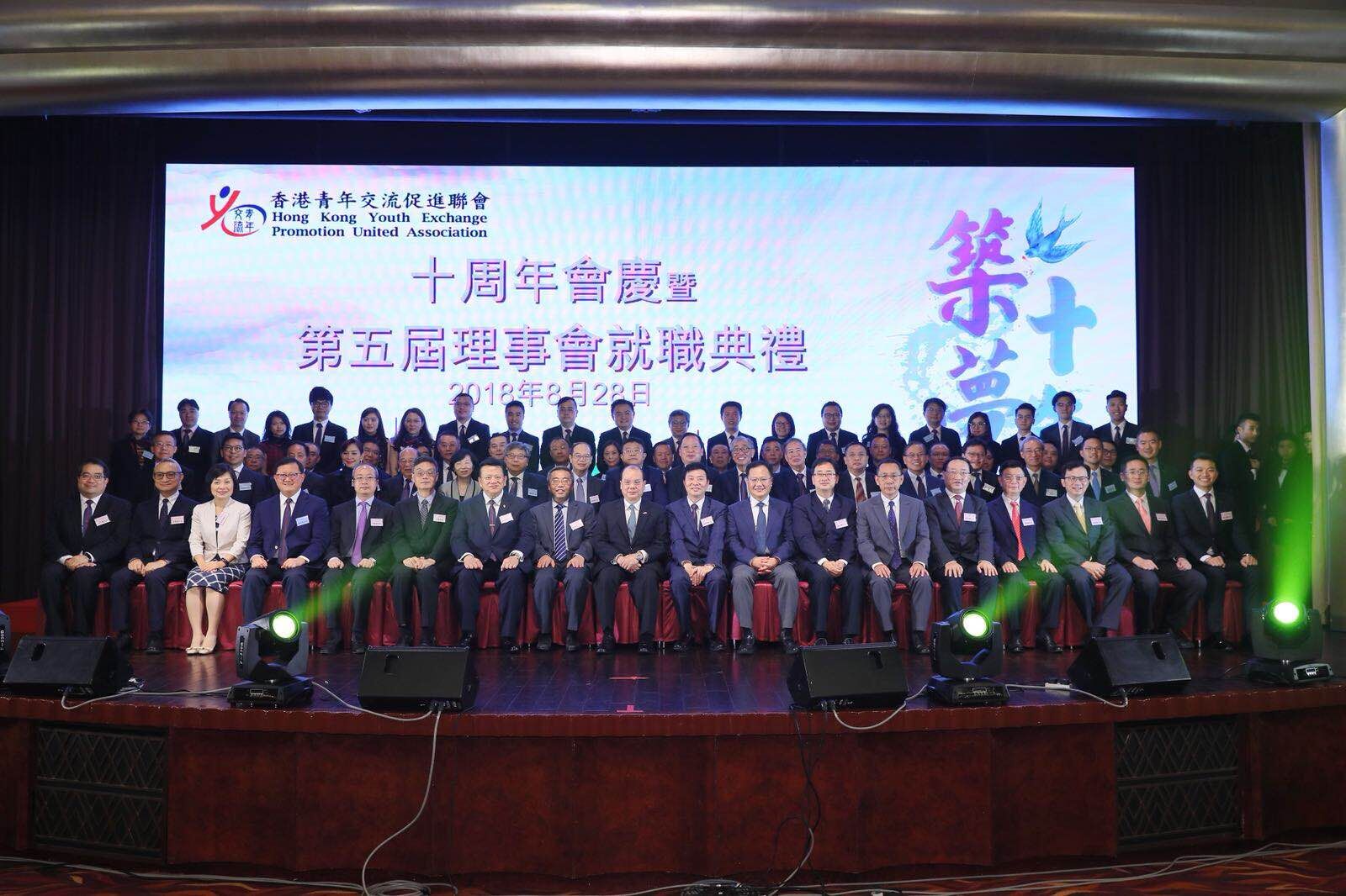 香港青年交流促进联会第五届理事会就职典礼合影。(图片来源:中央政府驻港联络办)