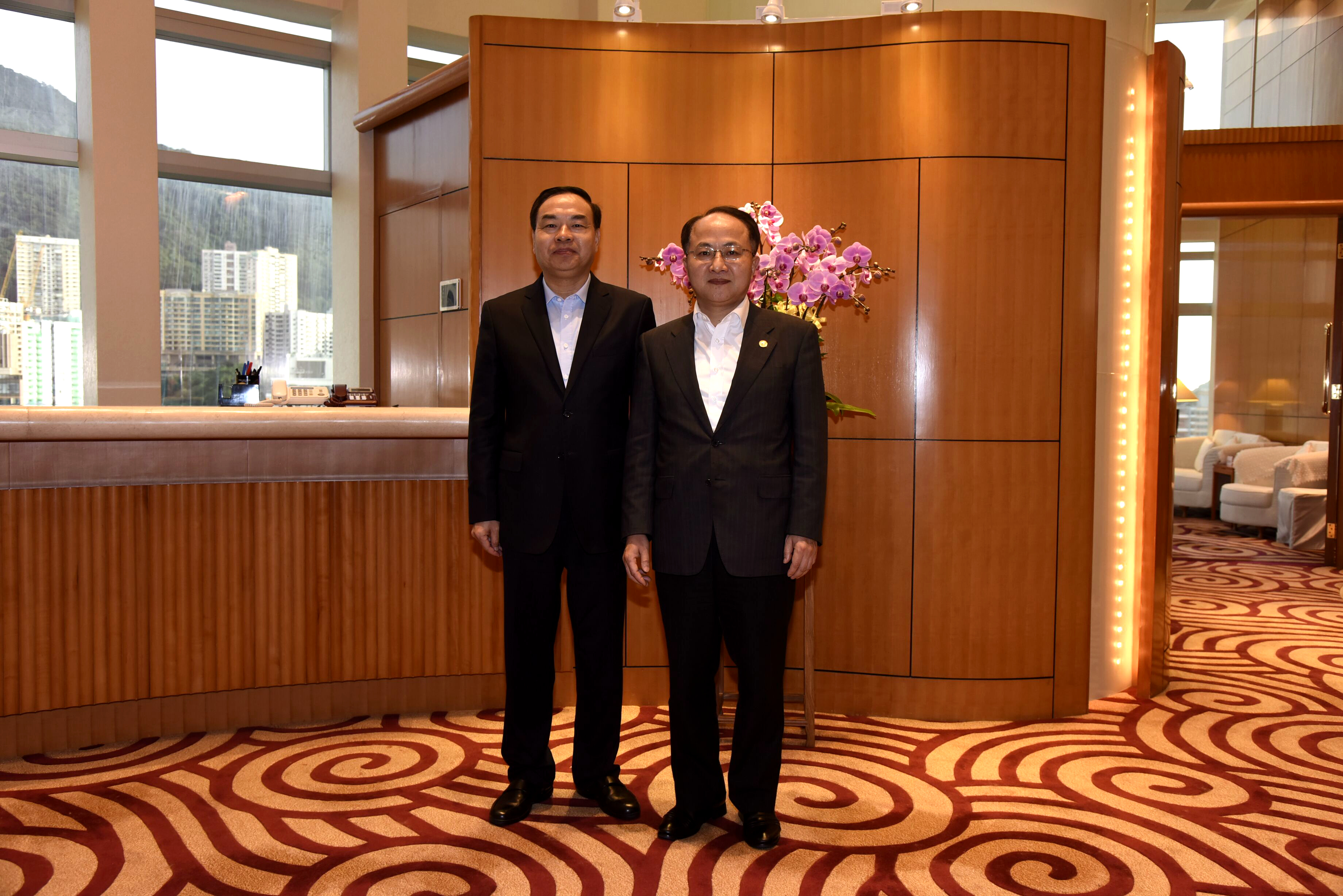 王志民主任与重庆市市长唐良智在会见前合影。(图片来源:中央政府驻港联络办)