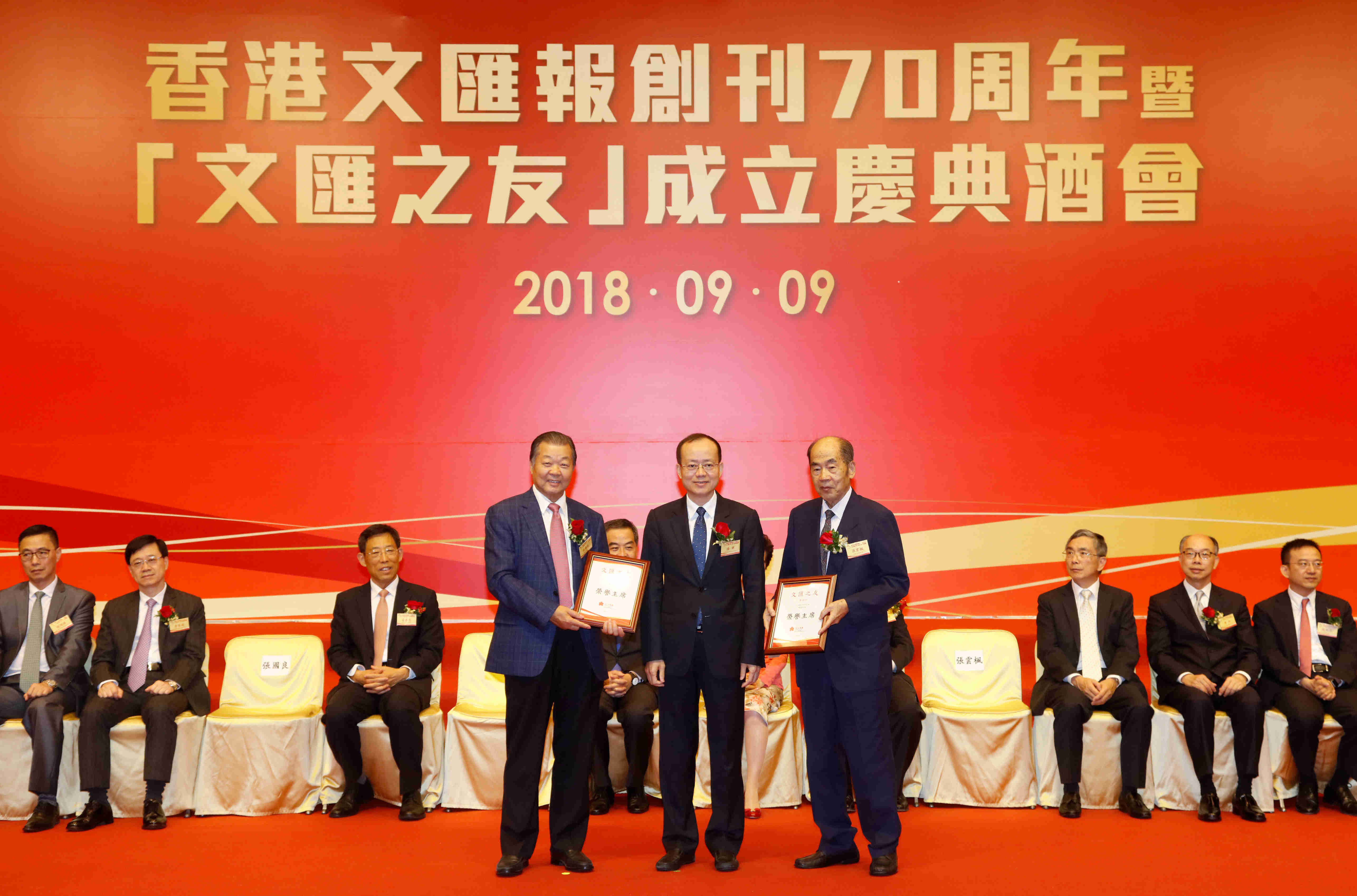 杨健副主任向“文汇之友”荣誉主席颁发证书。(图片来源:中央政府驻港联络办)