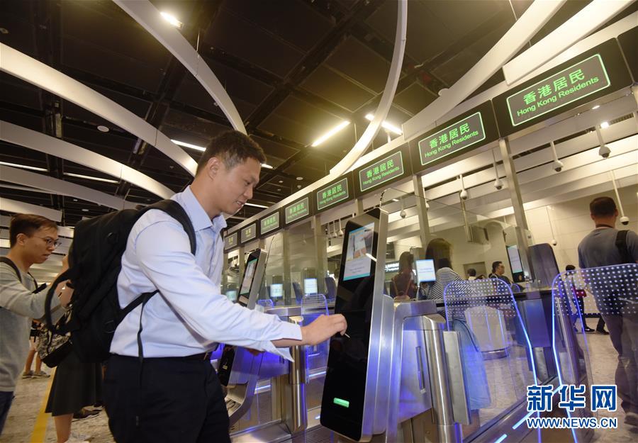 9月23日,在香港西九龙站,乘客在使用自动闸机办理离港通关。新华社发(王申 摄)